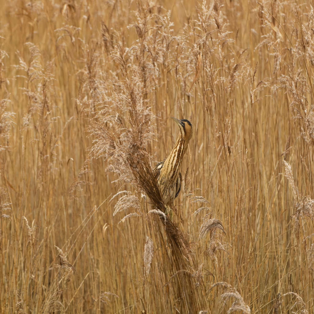 C’est normal ! Ce héron très discret est connu pour sa faculté à se camoufler parmi les roseaux. Son chant singulier rappelle les cornes de brume et vient renforcer le caractère mystérieux des marais.
